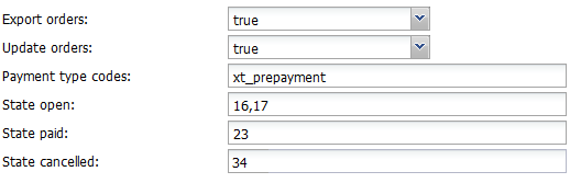 Stellen Sie sicher, dass „Export orders“ und „Update orders“ auf „True“ gesetzt sind.