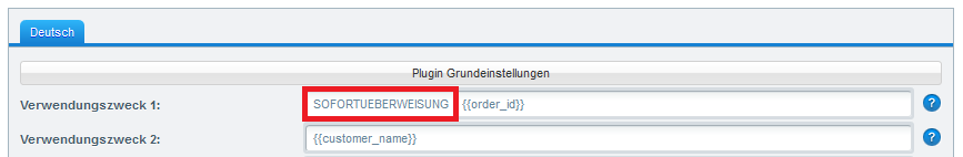 Do not use a general purpose such as the name of your shop or a frequently used word such as "payment" or "order" for recognition. Otherwise, even regular bank transfers from customers could be classified as online transfers and ignored. Choose a word that is most likely not used by customers for a regular Bank Transfer. You can also use a random code such as SOFORT3C8X5.